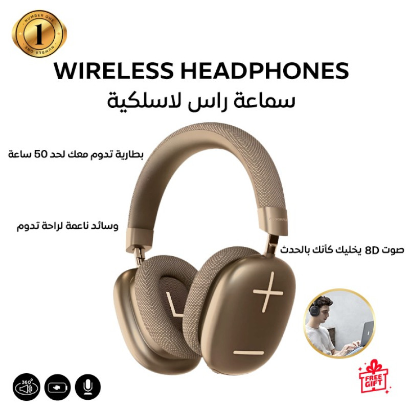 سماعات اذن لاسلكيه استمتع بصوت نقي وتجربة استماع فاخرة مع سماعة الرأس اللاسلكية باللون الذهبي، تجمع بين الأناقة والراحة والأداء القوي في تصميم واحد مميز.